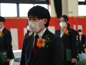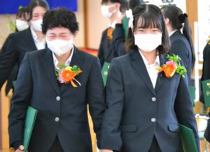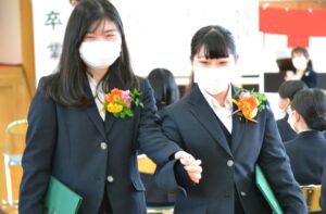 式典中の緊張した表情から一変、退場時にはハイタッチや手をつないで歩き出す姿が見られました。