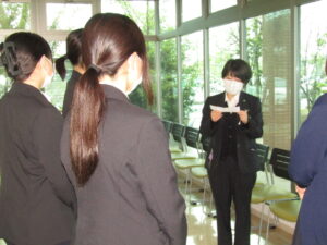学校案内では、これから始まる講義や演習のイメージが湧くように、私たちが3年間で学んだ経験を交えながら校内を紹介しました。