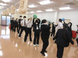 レクリエーションでは、解剖生理学の知識カルタやボール送りを行いました。それまでの緊張感が嘘のように、学生が一体となって盛り上がり、充実した時間を過ごすことが出来ました。