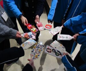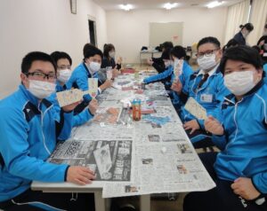 学生も教員も皆、互いがどのような羽子板を作成するのか興味深く見聞きしたり、今年の抱負を語り合うなどしながら、